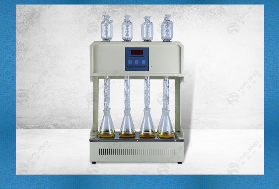 該儀器是分析污水中COD(化學耗氧量)的一種前期預處理的加熱回流裝置;為我廠新研發產品,各項指標均優于之前產品。采用敷有稀土材料的微晶玻璃面板為樣品進行消解工作;由加熱、溫控以及風冷三部分構成,根據實驗方法將溫度升至165℃,并保持恒溫2個小時后完成COD消解步驟。
