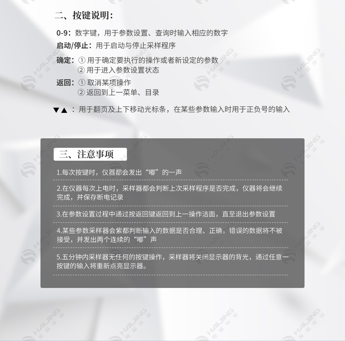 7.多種采樣程序啟動方式:外部信號觸發啟動、超標留樣啟動、預設時間啟動、即時啟動、液位超標觸發啟動等等,滿足用戶需求。