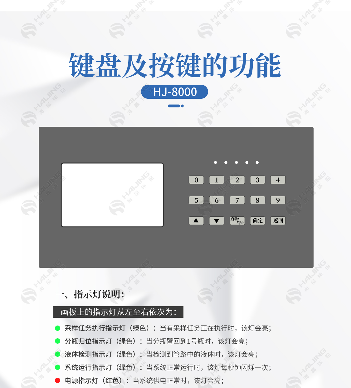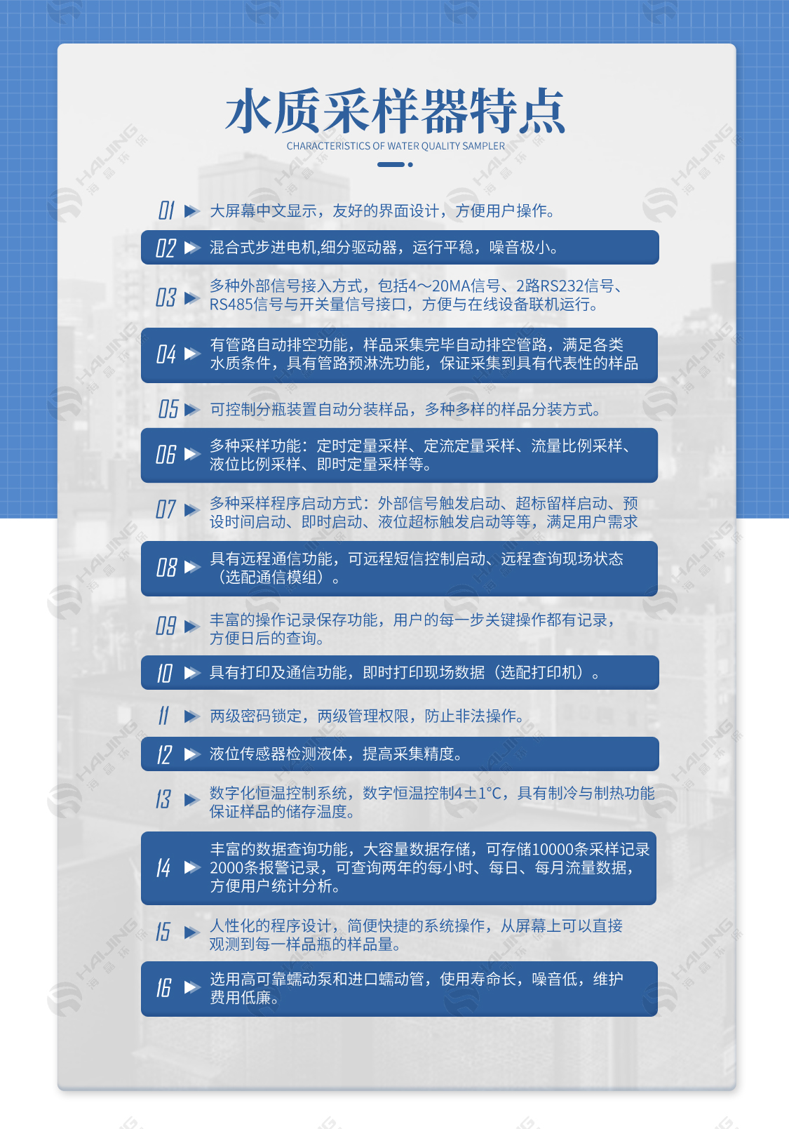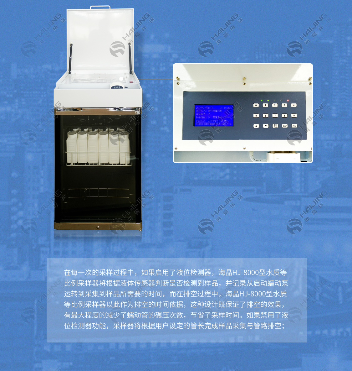 4.有管路自動排空功能,樣品采集完畢自動排空管路,滿足各類水質條件,具有管路預淋洗功能,保證采集到具有代表性的樣品。