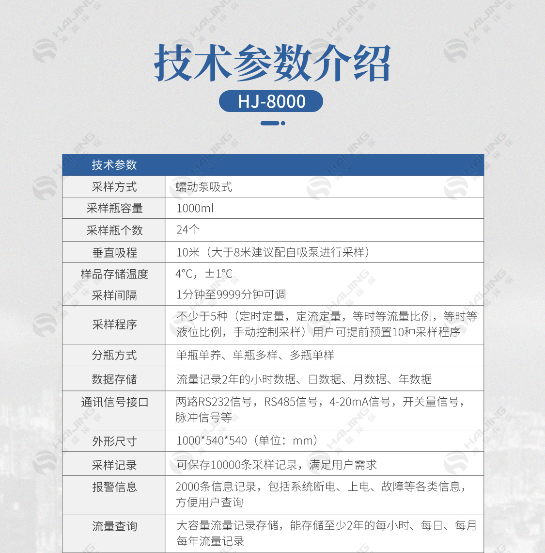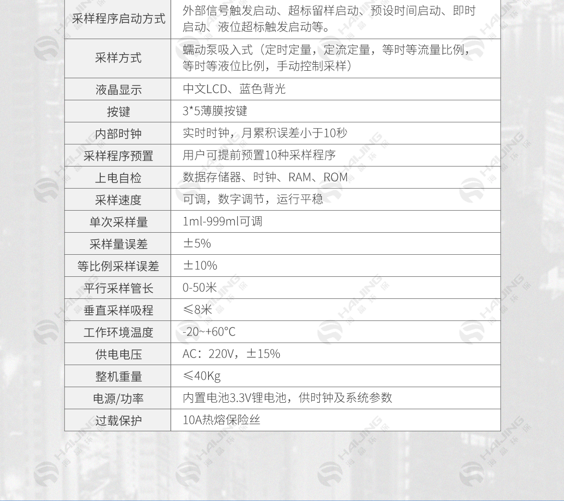 7、采樣程序:不少于5種(定時定量,定流定量,等時等流量比例,等時等液位比例,手動控制采樣)用戶可提前預置10種采樣程序