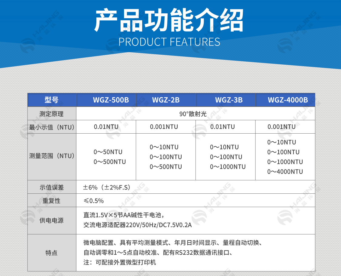 最小示值(NTU) 0.01NTU 0.001NTU 0.01NTU 0.001NTU