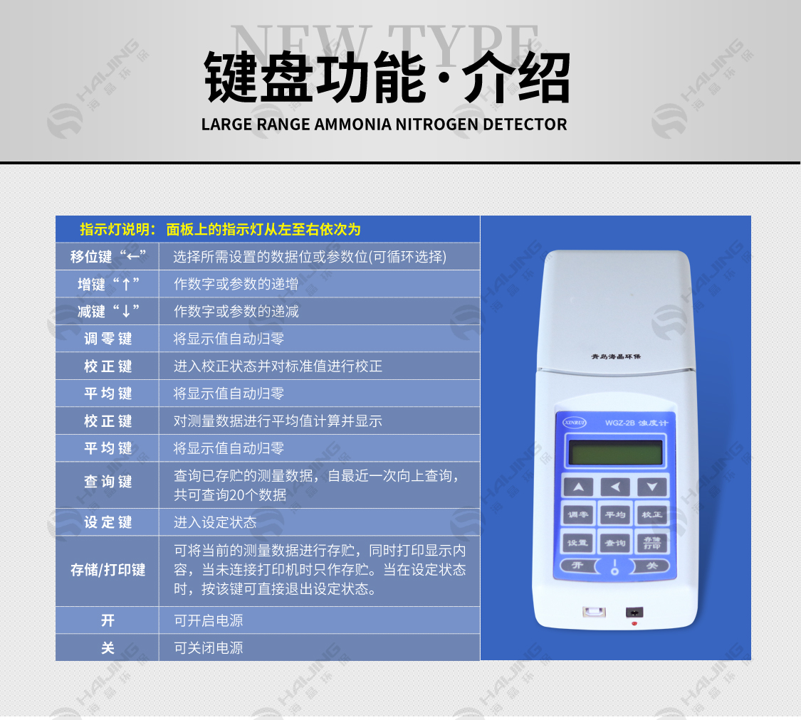 特點  微電腦配置、具有平均測量模式、年月日時間顯示、量程自動切換、自動調零和1~5點自動校準、配有RS232數據通訊接口、
