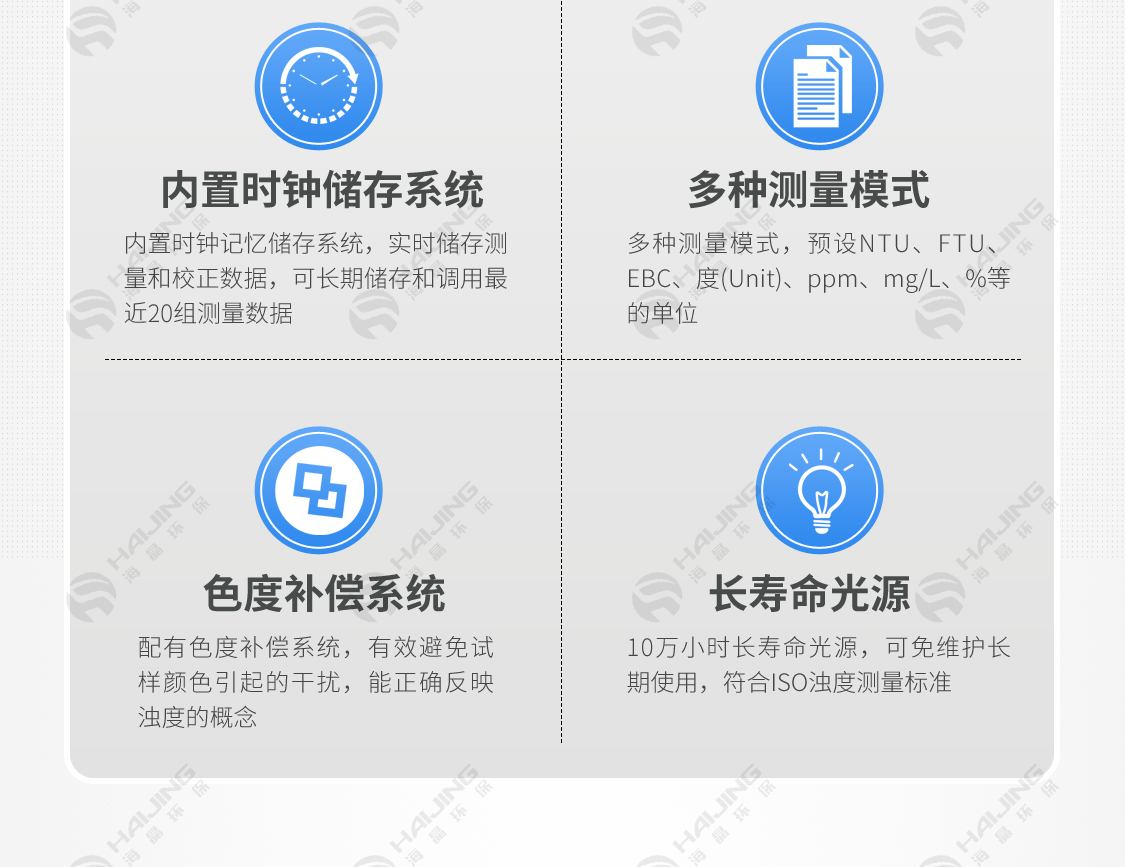 ◆配有色度補償系統,有效避免試樣顏色引起的干擾,能正確反映濁度的概念