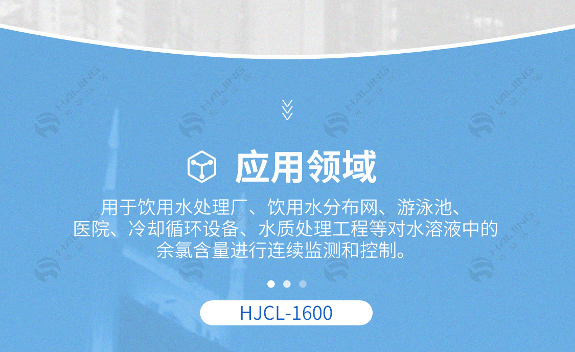 用于飲用水處理廠、飲用水分布網、游泳池、醫院、冷卻循環設備、水質處理工程等對水溶液中的余氯含量進行連續監測和控制。
