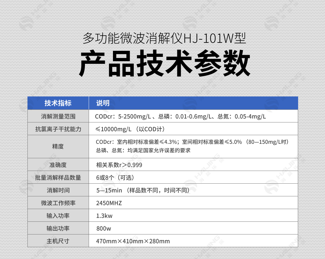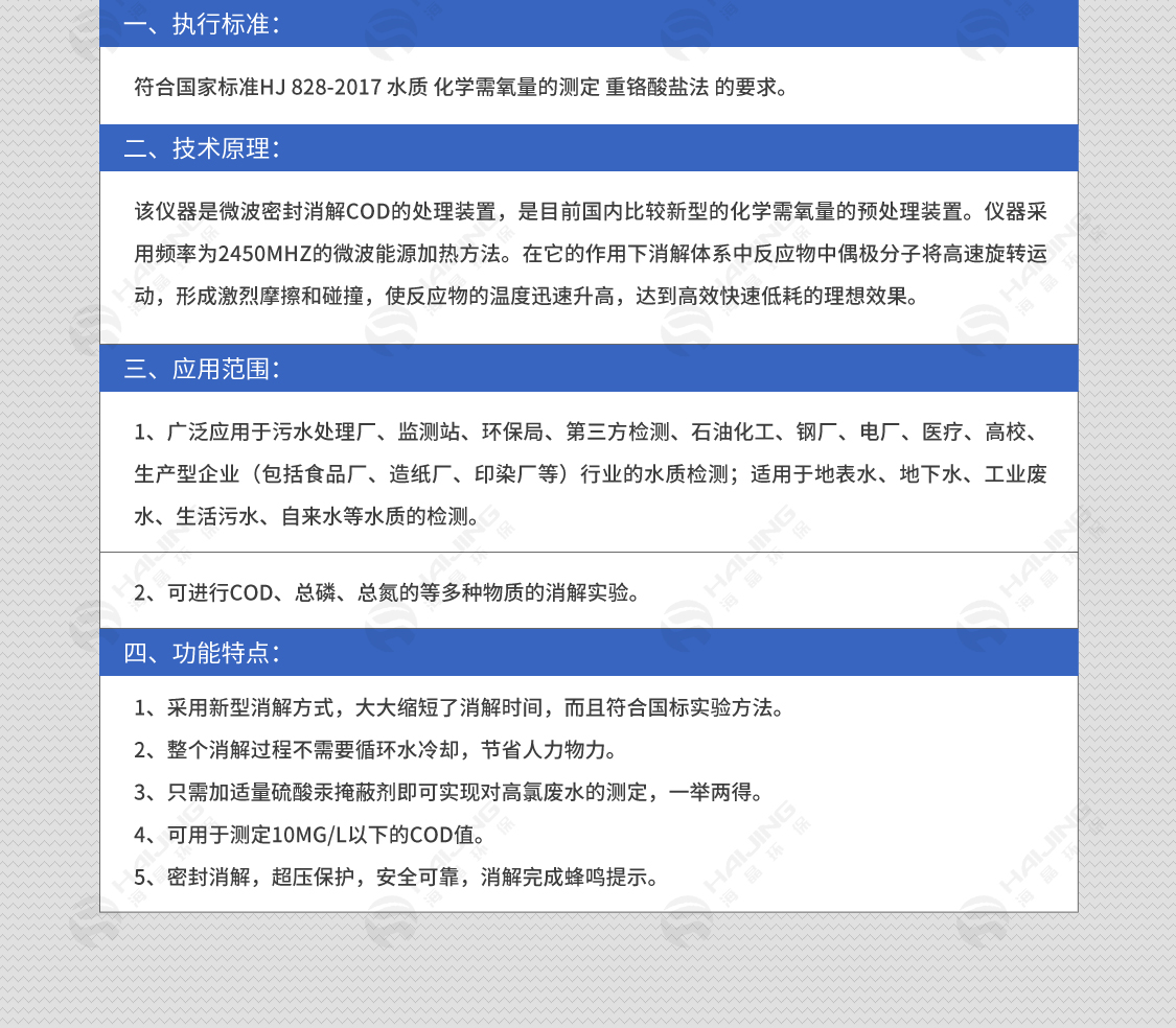 1、消解測量范圍:CODcr:5-2500mg/L 、總磷:0.01-0.6mg/L、總氮:0.05-4mg/L